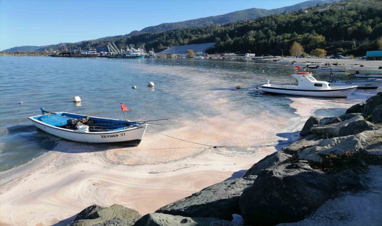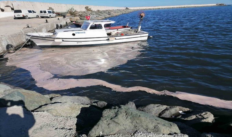 Kastamonu’nun İnebolu ilçesinde balıkçı teknelerinin yanaştığı limanda deniz yüzeyi sarı tabakayla kaplanırken, çevreyi de kötü koku sardı.