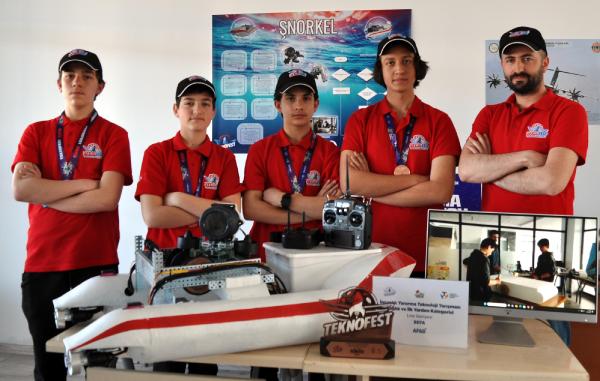 Sevilay AY- Özge ARIK/KAYSERİ, (DHA)- KAYSERİ'de 4 lise öğrencisi, denizde boğulma vakası geçiren kişileri kurtarmak için tasarladıkları 4 motorlu araçla Teknofest’te 3'üncü oldu. Takım kaptanı Ertuğrulhan Yağmur (15), "Ürünümüz su üstünde ve su altında kurtarma sağlıyor, müdahale ve görüntüleme yapabiliyoruz. Bu yüzden dünyada da bir ilk" dedi.