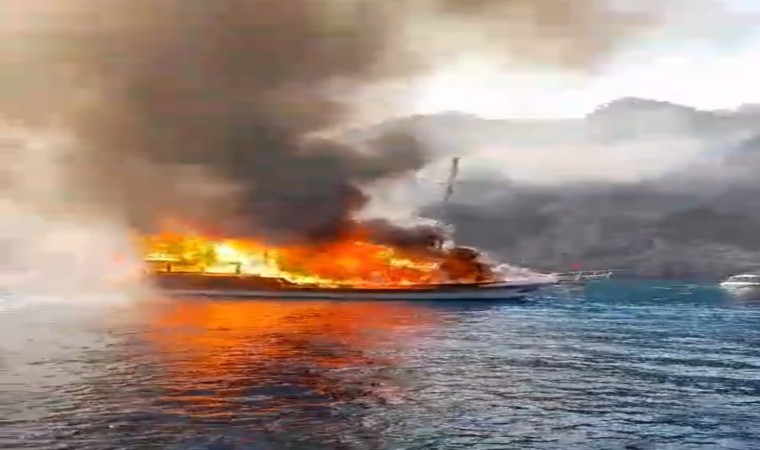 Bu arada tamamen yanan gezi teknesinin denizden tahliyesi için de Liman Başkanlığı’ndan bölgeye römorkör sevk edildiği belirtildi.