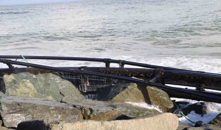 Rize’de fırtınada denizde bulunan balık kafesleri bulundukları yerden koparak karaya sürüklendi.