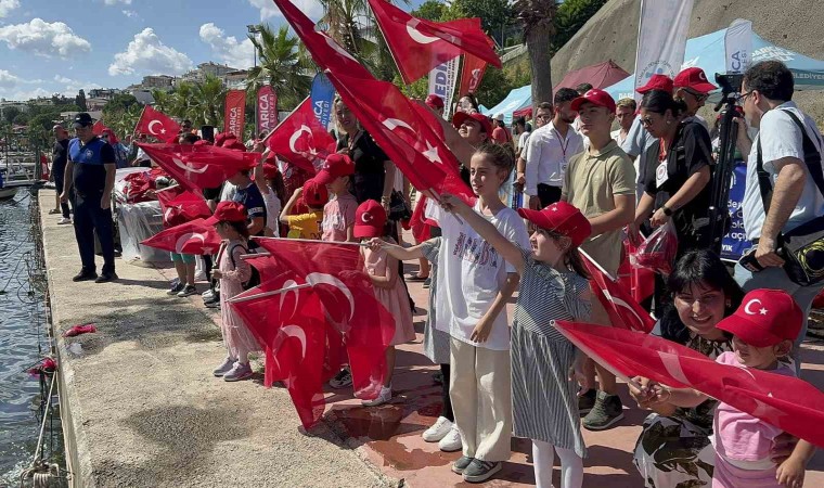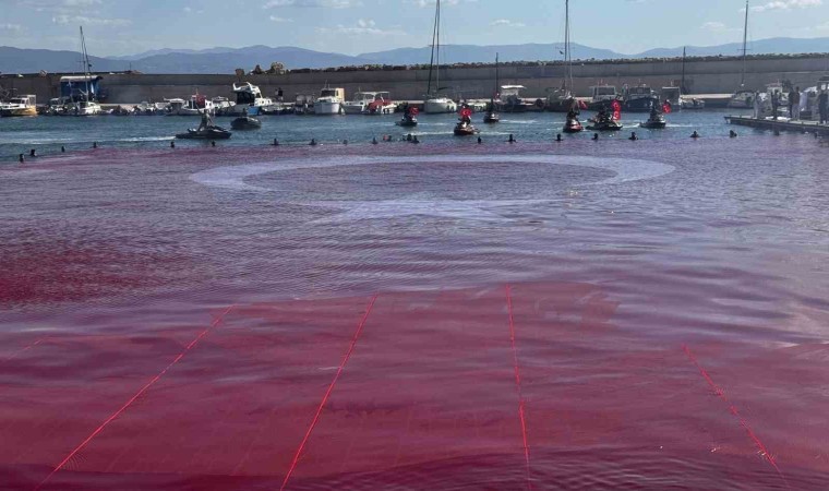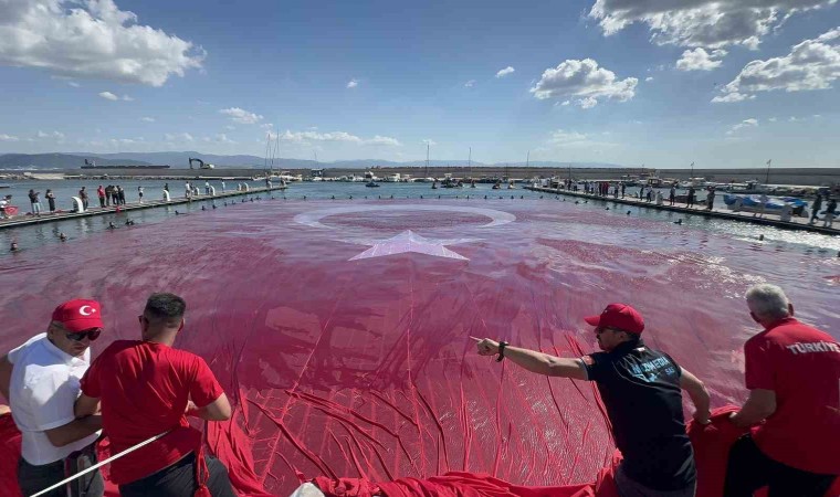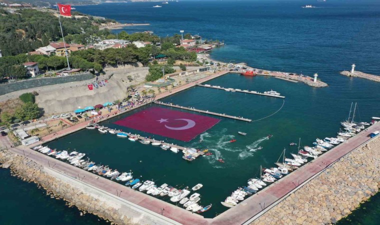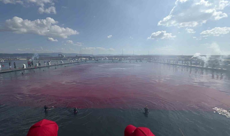 Kocaeli’nin Darıca ilçesinde 1 Temmuz Denizcilik ve Kabotaj Bayramı dolayısıyla dalgıçlar, deniz yüzeyinde bin 923 metrekarelik Türk bayrağı açtı.