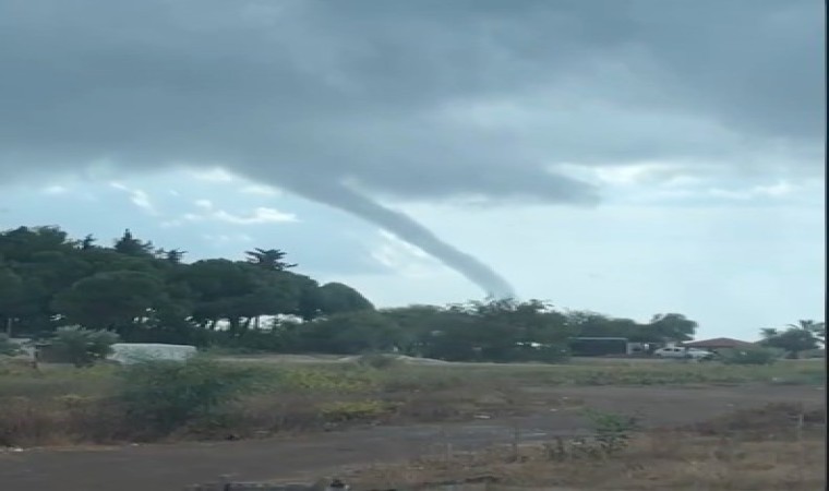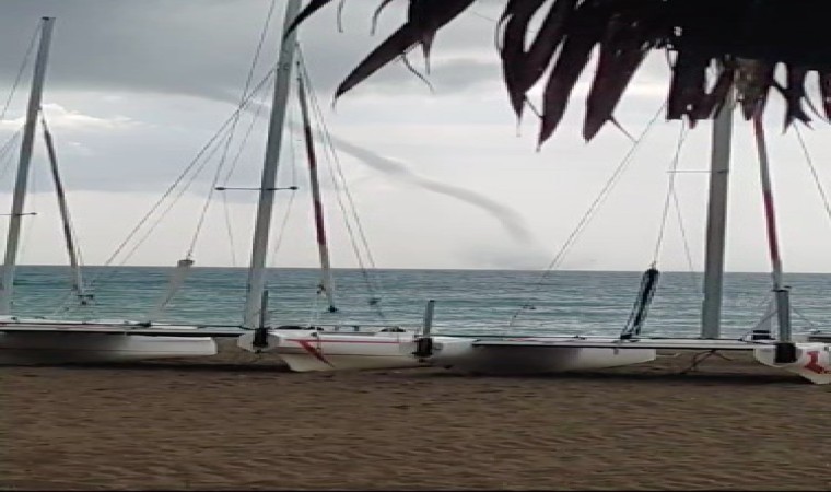Antalya’nın Serik ilçesinde denizde oluşan devasa hortum karaya ulaşmadan kayboldu. Hortum vatandaşlar tarafından cep telefonuyla kaydedildi.