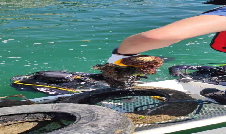 Tekirdağ’da Çevre Haftası sebebiyle yapılan dip temizliğinden çöpler fışkırdı.