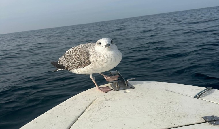 Üç arkadaş sahil boyunca tuttukları balıkları tekneleriyle kendilerine eşlik eden martıyla paylaşırken, yapılan deniz yolculuğu ise kıyıya yanaşmalarının ardından sona erdi.