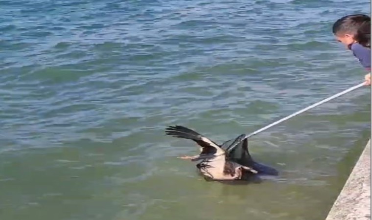 Gölcük’te denize düşen yaralı leylek, itfaiye ekipleri tarafından kurtarıldı.