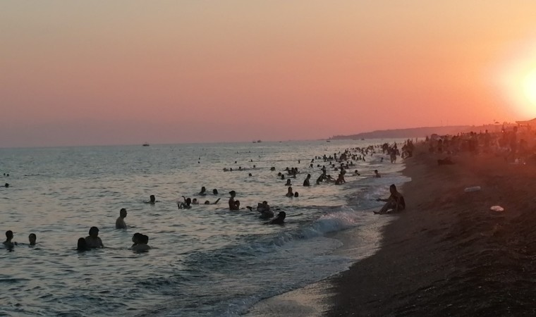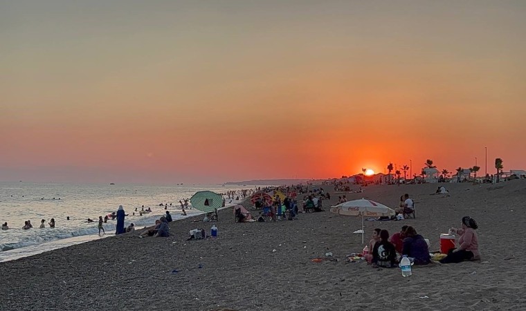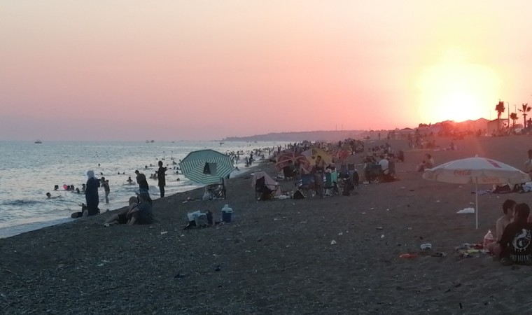 Antalya’nın Manavgat ilçesinde vatandaşlar, bunaltıcı ve yakıcı sıcaklar nedeniyle, denize girmek için güneşin batmasını bekliyor. Akşam saatlerinde ailecek sahillere akın eden vatandaşlar, güneşin batmasının ardından denize giriyor.
