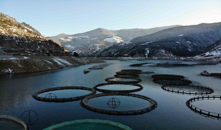 Torul Barajı’nda bulunan çiftliklerinde yetişen Gökkuşağı alabalıklarının deniz çiftliklerinde ihracata hazır hale gelmesinin ardından yaklaşık 410 milyon dolarlık bir ihracat rakamı ile farklı ülkelere gönderildiğini ifade eden Su Ürünleri Yüksek Mühendisi Ahmet Bingöl, “Gümüşhane Torul Baraj Gölü’nde yaklaşık 500 ton kapasiteli balık çiftliklerimiz var. Bu çiftliklerimizde 2 gram ağırlığındaki yavru Gökkuşağı alabalıklarımızı yılın 12 ayı boyunca yetiştirdikten sonra somon adayı olarak Vakfıkebir ve Arsin’de bulunan deniz çiftliklerimize gönderiyoruz. Burada da 3-4 kilo ağırlığa ulaşınca somon olarak yurtdışına ihracatlarını gerçekleştiriyoruz. Daha çok Rusya’ya ihraç ediyoruz, Japonya, Şili ve yeni pazar olarak Çin’e ihraç etmeyi düşünüyoruz. Burada bu yıl yaklaşık 350 ton bir balık yetiştirdik, deniz çiftliklerimizde büyüme ağırlıklarını da hesaba katarsak yaklaşık 2 bin ton bir ihracatımız olacak. Ocak ve Ekim aylarında yaklaşık 70 bin ton somon ihracatı yapıldı. Bu da 410 milyon dolar ihracat anlamına geliyor. Bu yıl da 70-80 bin ton üretim bekliyoruz İnşallah daha fazlası da olacak. Denizi olmayan Gümüşhane’den Japonya, Çin, Şili ve Rusya’ya balık ihracatı yapıyoruz” dedi.