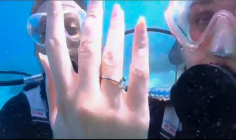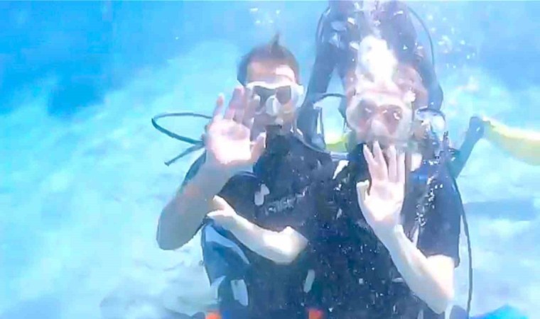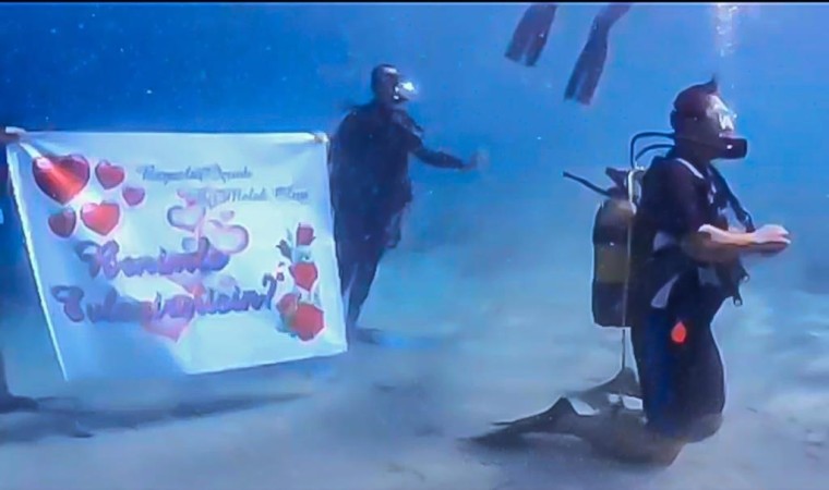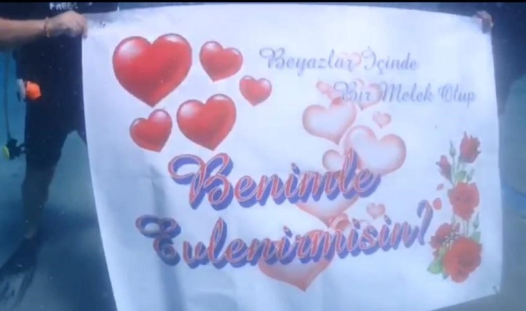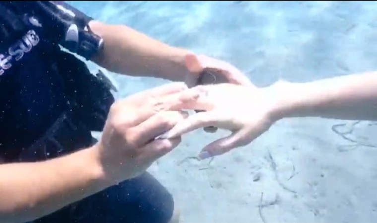Muğla’nın Datça ilçesinde Ercan Alacalı kız arkadaşına deniz altında evlenme teklif etti.