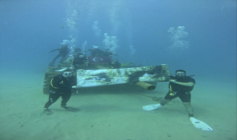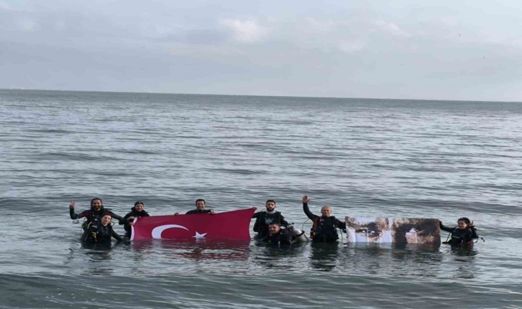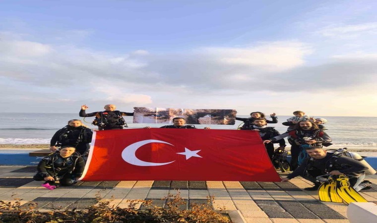 Türkiye Cumhuriyeti’nin kurucusu Mustafa Kemal Atatürk’ün ölümünün 86. yıl dönümünde denizin altında Türk bayrağı ve Atatürk posteri açtılar.