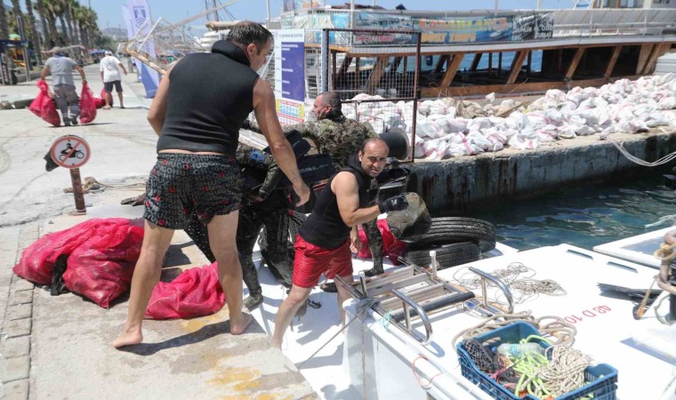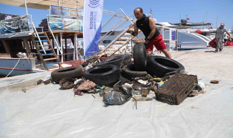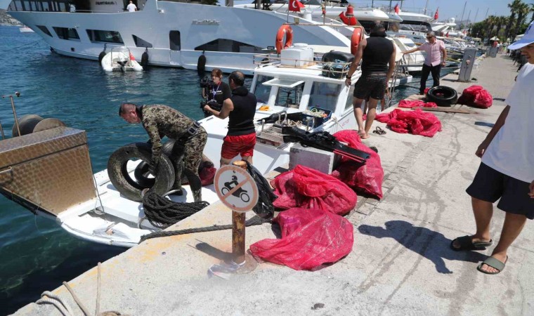 Muğla’nın Bodrum ilçesinde deniz dibi temizliği yapan dalgıçlar, 1 saatte yarım ton çöp çıkardı. Çöpleri gören yerli ve yabancı turistler ise hayrete düşürdü.