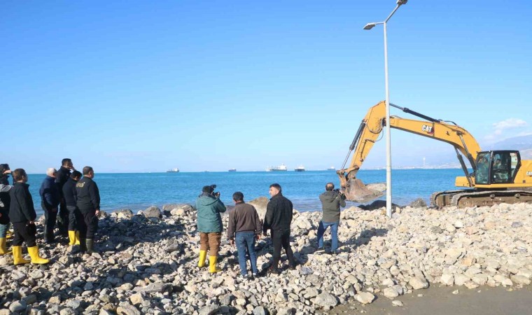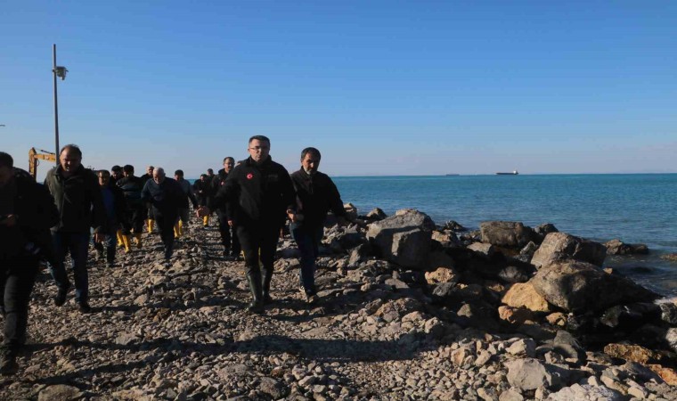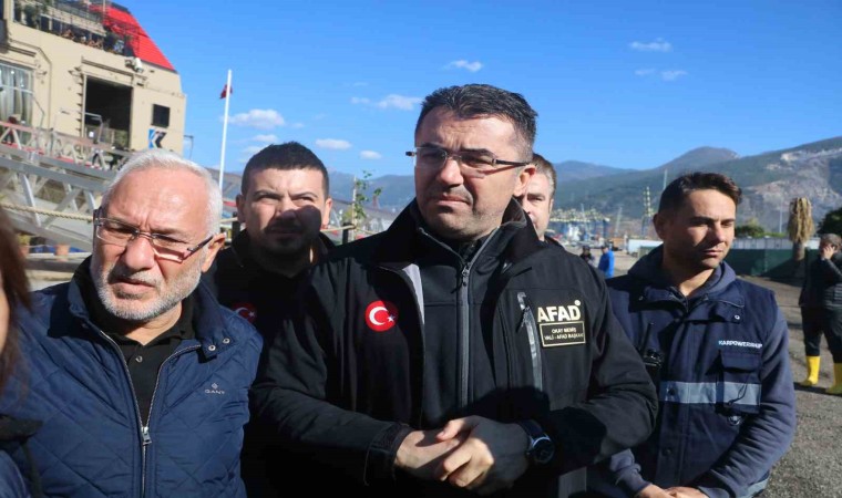 AFAD Başkanı Memiş, 6 Şubat depremleri sonrası sahil bandında 40 metrelik kaymanın yaşandığını belirterek, “Malumlarınız olduğu üzere hafta sonunu hakikaten turuncu uyarılar neticesinde gerçekten böyle çok yoğun bir hava muhalefetiyle geçirdi. Neredeyse bütün Türkiye, özellikle geniş kenarlarında bulunan şehirlerimiz olumsuz yönde etkilendiler. AFAD ekiplerimizin koordinasyonunda kamunun bütün imkanları seferber edilerek can kaybı yaşanmadan hava şartlarının maruz bırakmış olduğu bu durumu yönetmeye büyük gayret sarf ettik. Bugün İskenderun’dayız. İskenderun’da da hafta sonu yaşanan yoğun yağış, fırtına ve deniz taşması neticesinde bu görmüş olduğunuz alan yeniden suyla doldu. Özellikle denizden gelen suyla doldu. Aslında 6 Şubat’ta karada meydana gelen en büyük deprem hadisesinden sonra biz biliyoruz ki yaklaşık 40 santim kadar suya gömülmüştü, kara parçası. Bu İskenderun Körfezi’nin tamamı için bunu söyleyebiliriz. Biz bu durumu bildiğimiz için Ulaştırma Bakanlığımıza bağlı ekiplerimiz deniz taşmasının önüne geçmek maksadıyla bir tahkimat çalışmasına zaten başlamışlardı. Çalışmanın yürütüldüğü alanda yapılan tahkimat sisteminin faydalı olduğunu gözlemledik. Ancak çalışma inşaat halinde devam ediyor iken böyle bir hava muhalefetiyle karşı karşıya kaldık. Dolayısıyla şimdi projede bir revizyona gidilerek yaklaşık 2.2 kilometre alan tahkimat alanı neredeyse 4 kilometreye çıkarıldı. Bu biraz daha bu sorunun kesin çözümüne yönelik bir çalışma olacak” dedi.