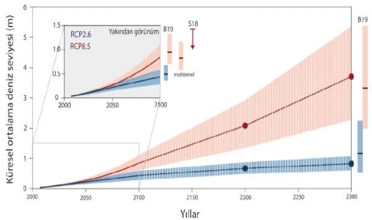 Prof. Dr. Avcı ise İzmir'de deniz seviyesindeki değişim en çok İzmir Körfezi'ni etkileyeceğini vurguladı. Özellikle Kordon'daki rıhtımın, dalgaları kıracak ve yansıtacak şekle dönüştürülmesi önemli. Karşıyaka'da mevcut düzenlemelere ek olarak, deniz seviyesinin değişmesinden sonra birtakım önlemlerin alınması gerek. Benzer şekilde, Karşıyaka'dan Mavişehir'in batısına kadar devam eden bir set bulunsa da deniz seviyesindeki yükselme nedeniyle yeni önlemlere gerek duyulabilir. Deniz seviyesi yükselmesinin, kıyı boyunca bazı alanların sular altında kalmasına ve tuzlu suların yeraltı sularına karışmasına sebep olacağı tahmin ediliyor. Bu durum, tarımsal üretim açısından ciddi sorunlar yaratabilir. Ayrıca raporda, Karadeniz'e akan akarsuların, deniz seviyesindeki değişimden kısmen etkileneceği, bunun deniz suyunun iç kısımlara ilerlemesine ve yer altı sularının tuzlanmasına sebep olabileceği uyarısında bulunuluyor.