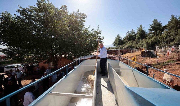 Tarım ve hayvancılıkla uğraşan vatandaşlar için hayata geçirdiği 50’nin üzerinde projeyle kırsala destek vermeyi sürdüren Denizli Büyükşehir Belediyesi küçükbaş hayvan yetiştiricilerine “küçükbaş hayvan yıkama makinesi” desteği vererek önemli bir sorunlarını daha çözdü. Bu çerçevede temin edilen küçükbaş hayvan yıkama makinesi, yetiştiricilerin hizmetine sunulmak üzere Denizli Damızlık Koyun Keçi Yetiştiricileri Birliği’ne teslim edildi. Yeşilyayla Mahallesi’nde düzenlenen teslim programına, Denizli Büyükşehir Belediye Başkanı Osman Zolan, Denizli İl Tarım ve Orman Müdürü Şakir Çınar, Denizli Damızlık Koyun Keçi Yetiştiricileri Birliği Başkanı Kadir Özdemir, davetliler, küçükbaş hayvan yetiştiricileri ve vatandaşlar katıldı. Bir süre küçükbaş hayvan yıkama makinesini inceleyen Başkan Osman Zolan, burada koyunların yıkama çalışmasına katıldı.