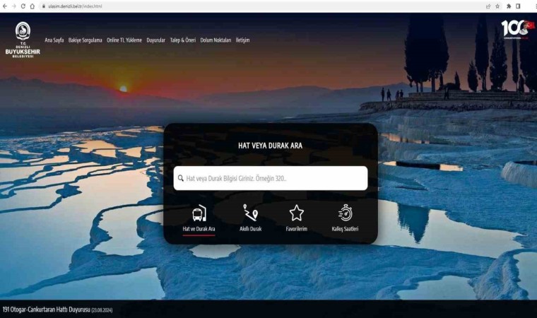 Teknolojik altyapısı ile Türkiye’nin en önde gelen belediyelerinden biri olan Denizli Büyükşehir Belediyesi, ulaşım portalında değişikliğe gitti. Denizli Büyükşehir Belediyesi yenilediği ulaşım portalı ile vatandaşlara birçok kolaylık getiriyor. Denizli Büyükşehir Belediyesi Bilgi İşlem Dairesi Başkanlığı tarafından geliştirilen ulaşım portalı uygulaması yeni ara yüzü ile yayında. Ulaşım Portalı uygulamasının metin tabanlı yeni ara yüzü sayesinde görme engelli vatandaşlar da uygulama ile birçok bilgiye anında ulaşma imkanına kavuştu.