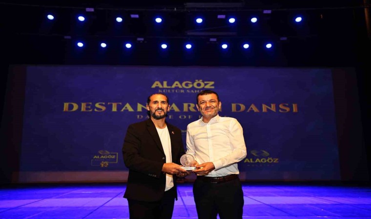 Başkan Çavuşoğlu daha sonra Destanların Dansı Genel Sanat Yönetmeni Serhat Turak’a üzerinde Denizli horozu bulunan kaide hediye etti.