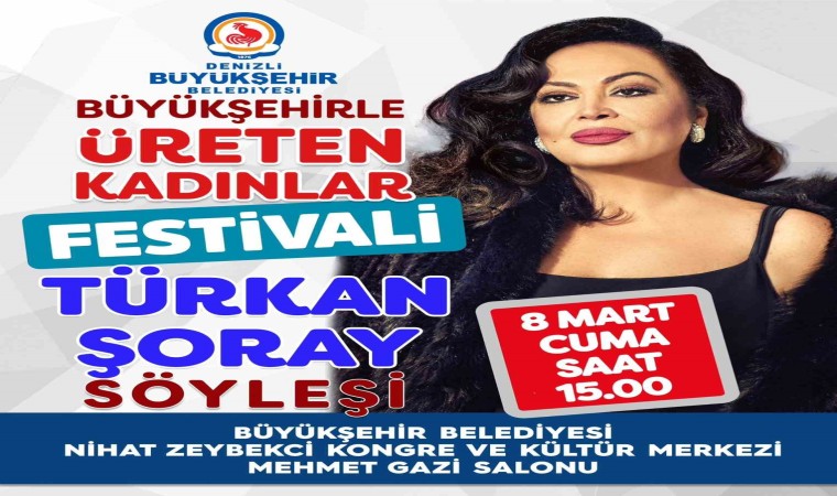 4. Büyükşehirle Üreten Kadınlar Festivali’nin onur konuğu Türk Sinemasının efsane ismi Türkan Şoray olacak. Festivalde kadınlarla söyleşide bir araya gelecek usta oyuncu Türkan Şoray’ın yanı sıra sevilen ünlü şarkıcı Dilek Türkan, Elif Buse Doğan, Zara, şef Danilo Zanna, Türkiye’de sosyal girişimcilik ve sosyal sorumluluk alanlarında akla ilk gelen akademisyenlerden Prof. Dr. Itır Erhart ve Beyhan Budak gibi birbirinden değerli isimler yer alacak. 8 Mart Dünya Kadınlar Günü’nde açılacak festival kapsamında Denizli Büyükşehir Belediyesi Kent Konseyi Kadın Meclisi saat 11.00’de 15 Temmuz Delikliçınar Şehitler Meydanı’ndaki Atatürk Anıtı’na çelenk sunacak.