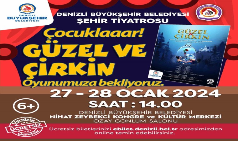 Denizli Büyükşehir Belediyesi, okulların ara tatil dönemine girmesinin ardından çocukların daha verimli ve eğlenceli bir tatil geçirebilmeleri için ücretsiz çocuk tiyatrosu ve planetaryum gösterimleri hazırladı. Bu kapsamda, Denizli Büyükşehir Belediyesi Şehir Tiyatrosu’nun hazırladığı Güzel ve Çirkin Müzikali 6 yaş ve üzeri çocuklar için sahnelenecek. 27-28 Ocak 2024 saat 14.00’te Büyükşehir Belediyesi Nihat Zeybekci Kongre ve Kültür Merkezi Özay Gönlüm Salonu’nda gerçekleştirilecek müzikalin ücretsiz biletleri bugünden itibaren ebilet.denizli.bel.tr adresi üzerinden alınabilecek.