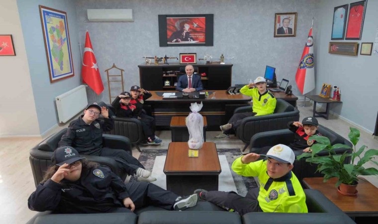 DENİZLİ(İHA) – Denizli İl Emniyet Müdürlüğü, polis olmayı hayal eden down sendromlu çocukları ağırlarken, Türk Polis Teşkilatı’nın 179. Yıldönümünü ve 10 Nisan Polis Haftası’nı kutladı.
