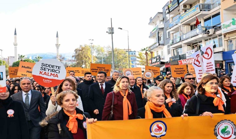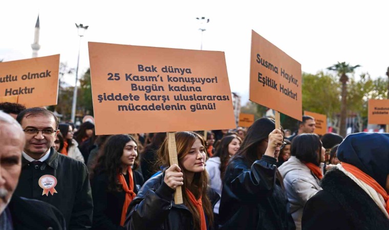 25 Kasım Kadına Yönelik Şiddete Karşı Uluslararası Mücadele Günü kapsamında yürüyüş düzenleyen kadınlar, şiddete “hayır” dedi. Büyükşehir Belediye Başkanı Bülent Nuri Çavuşoğlu ve eşi Nilgün Çavuşoğlu’nun da destek verdiği programda, kadın cinayetlerine dikkat çekmek için turuncu halıya ayakkabı bırakan kadınlar öldürülen hemcinslerinin isimlerini de üzerlerinde taşıdılar.