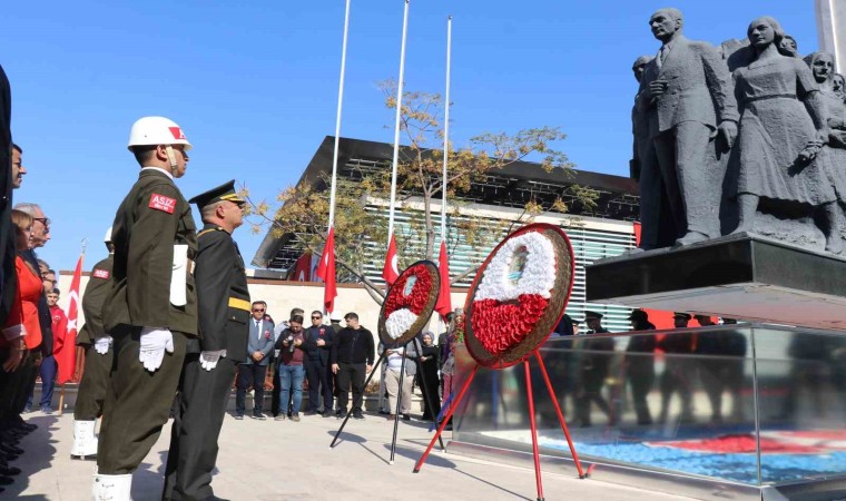 Denizli’de Türkiye Cumhuriyetinin kuruluşunun 101. yılı ve 29 Ekim Cumhuriyet kutlamaları, protokol üyelerinin Atatürk abidesine çelenkleri sunmasıyla başladı.