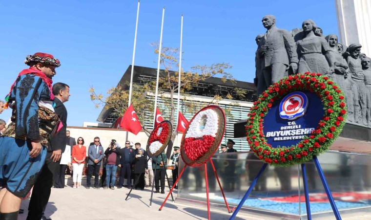 Denizli Valisi Ömer Faruk Coşkun ve Denizli Büyükşehir Belediye Başkanı Bülent Nuri Çavuşoğlu ile 11. Komando Tugay ve Garnizon Komutan Vekili Ulaştırma Albay Mehmet Cüneyt Balaban’ın Atatürk anıtına çelenkleri sunmasıyla başlayan tören, saygı duruşunda bulunulması ve İstiklal Marşının okunmasıyla sona erdi.