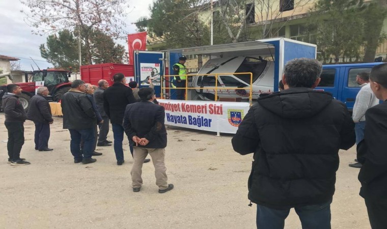 Çiftçilerin ilgi gösterdiği eğitim faaliyetinde, katılımcılara emniyet kemerinin önemi anlatılarak, İl Jandarma Komutanlığına ait emniyet kemeri simülasyon aracı ile uygulamalı eğitim verildi.