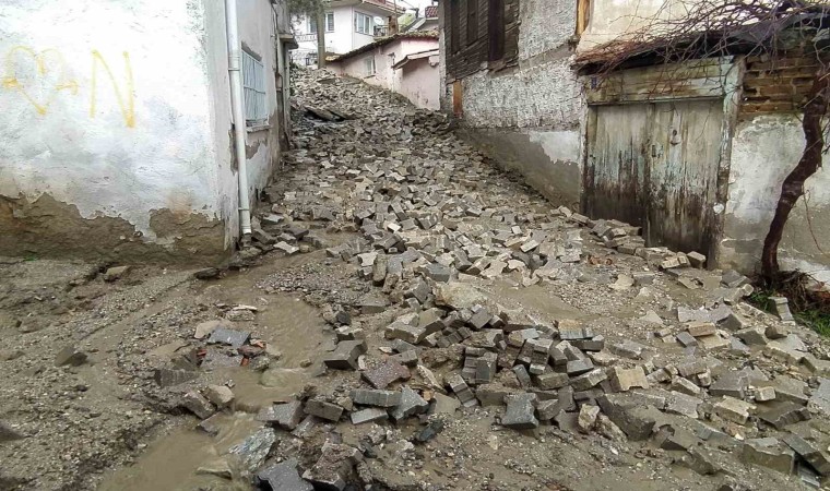 Buldan’a bağlı Yukarı Bucağı Mahallesi’nde altyapı çalışmaları sırasında sökülen parke taşları, yağış sonrası oluşan selle birlikte bulunduğu yerden metrelerce sürüklendi. Yağışın etkisiyle yerlerinden sökülen parke taşları, sürüklenerek yolu ulaşıma kapattı. Su borularının da yerinden sökülmesine neden olan yağışların nenden olduğu hasarın giderilmesi için belediye ekipleri tarafından çalışmalara başlandı.