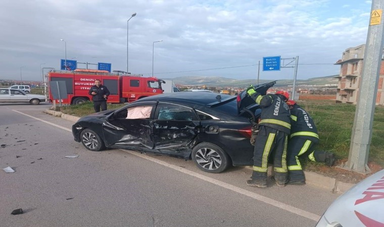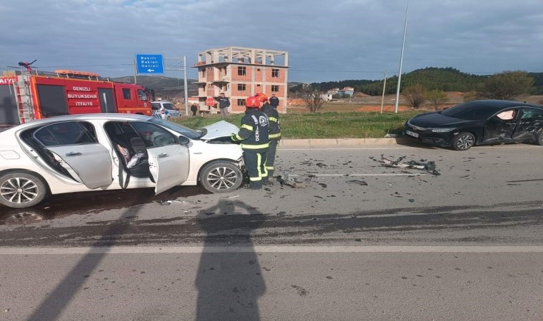Denizli’de iki otomobilin çarpıştığı kazada 3 kişi yaralanarak hastaneye kaldırıldı.