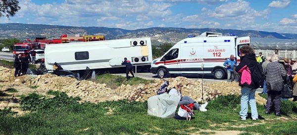 Denizli'de tur midibüsü ile otomobil çarpıştı: 1 ölü, 22'si turist 24 yaralı