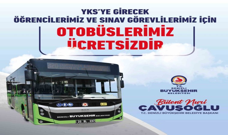 Denizli Büyükşehir Belediye otobüsleri hafta sonu Yükseköğretim Kurumları Sınavı (YKS)’ye girecek öğrenci ile sınav görevlilerine ücretsiz olacak.
