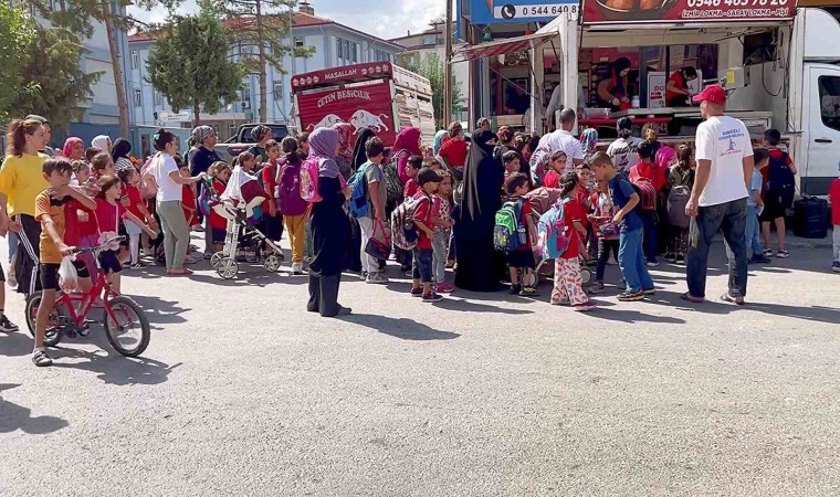 4 Bin kişilik lokma hayrına gelen çocuklardan oluşan kalabalık bir topluluk hem lokma ikramından aldı hem de Narin Güran için çocuklar ve vatandaşlar dua etti.
