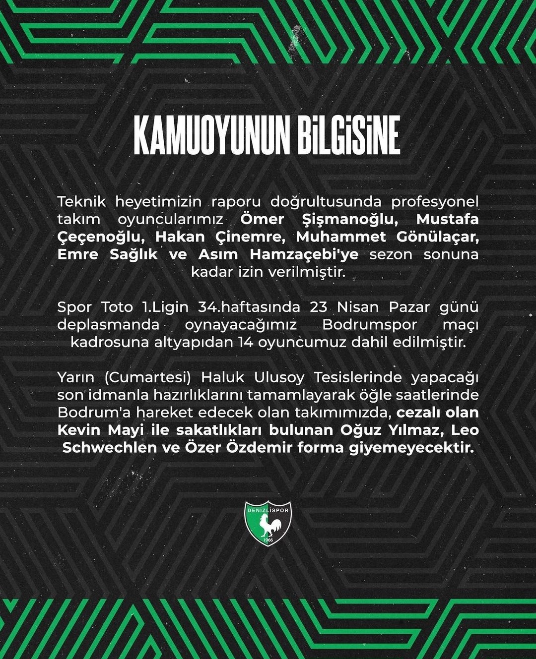 LİGDEN DÜŞTÜ GÖZÜYLE BAKILAN A. DENİZLİSPOR, OYUNCULARININ DAĞILMASI ARDINDAN BODRUMSPOR MAÇI İÇİN ALTYAPIDAN 14 GENCİ KADROYA DAHİL ETTİ.