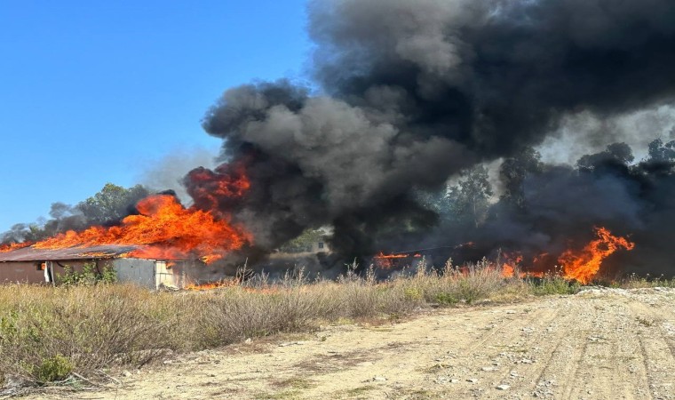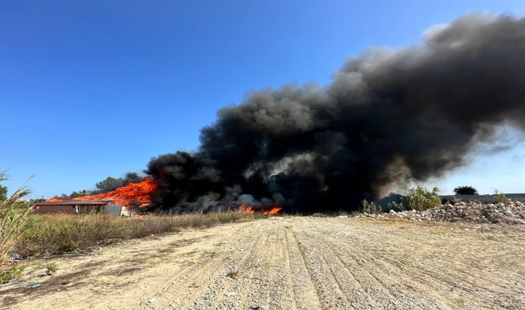 Antalya’nın Serik ilçesinde bir depo çıkan yangında alev topuna dönerek küle döndü. Çıkan dumanlar ise gökyüzünü kapladı.