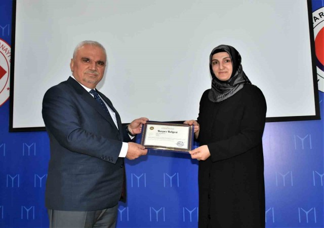 Programda konuşma yapan İl Müftüsü Erhun, Diyanet İşleri Başkanlığı personelinin her alanda vazife yaptığına değinerek, “Bu başarı belgeleri, Diyanet İşleri Başkalığı personeli ne iş yapıyor diye soranlara en büyük cevaptır. Bizler her yerdeyiz. Hayatın her alanında dokunuyoruz. Salgın hastalıklarda, afetlerde, depremlerde ve nerede olursa olsun darda kalan kim varsa ilk önce bizler yardım ellerimizi uzatıyoruz. Rabbim bizlere böyle ulvi bir görev nasip etti elhamdülillah. Bu vesileyle her birinize ayrı ayrı teşekkür ediyorum ve Başarı Belgelerinizi takdim etmek istiyorum. Bize bu belgeleri gönderen Prof. Dr. Ali Erbaş hocamıza da şükranlarımı arz ediyorum. Rabbim hepinizden razı olsun” dedi.