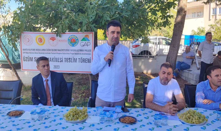 Müdür Yıldırım, “Hijyenik koşullarda üzüm işleme faaliyetlerinin yaygınlaştırılması projesi çerçevesinde üzüm üreticilerimizi desteklemek amacıyla GAP Kırsal Kalkınma Başkanlığı tarafından yüzde 70 hibe ile desteklenen projemizi hayata geçirmiş bulunmaktayız. Bu gün 23 adet üzüm sıkma makinasını çiftçilerimize dağıtıyoruz. Bundan ötürü GAP Başkanımıza, emeği geçen Kahta Kaymakamımıza, proje ortağımız, Ziraat Odası Başkanlığına, ve bu projede emeği geçen değerli mesai arkadaşlarıma teşekkür ediyorum. Çiftçilerimize hayırlı olmasını diliyorum” dedi.