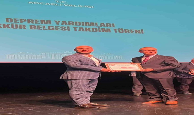 Kocaeli Valiliği, deprem bölgesine yardımda bulunan firmaları teşekkür belgesi ile ödüllendirdi. Nuh Çimento İnsan Kaynakları Direktörü Ersin Başyıldız, deprem bölgesine yaptıkları yardımlardan dolayı ödülünü Vali Seddar Yavuz’un elinden aldı.