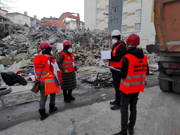 Ağrı İbrahim Çeçen Üniversitesi Fen Edebiyat Fakültesi Öğretim Üyesi Prof. Dr. İbrahim Han, Doç. Dr. Pınar Baykan, Doç. Dr. Ebru Senemtaşı Ünal, öğretim görevlisi Emine Narmanlı Han, yüksek lisans öğrencileri Salih Erk ve Furkan Dağaşan’dan oluşan ekiple Kahramanmaraş merkezli depremlerin yıktığı kentlerde ‘TÜBİTAK 1002 Doğal Afetler Odaklı Saha Çalışması Acil Destek Programı’ kapsamında ‘Deprem Sonrası Enkaz Yönetimi ve Deprem Sonrası Enkaz Yönetim Rehberi Hazırlanması’ çalışması için incelemelerde bulundu. Ekip dönüşte 4 aşamadan oluşan rehber hazırladı.