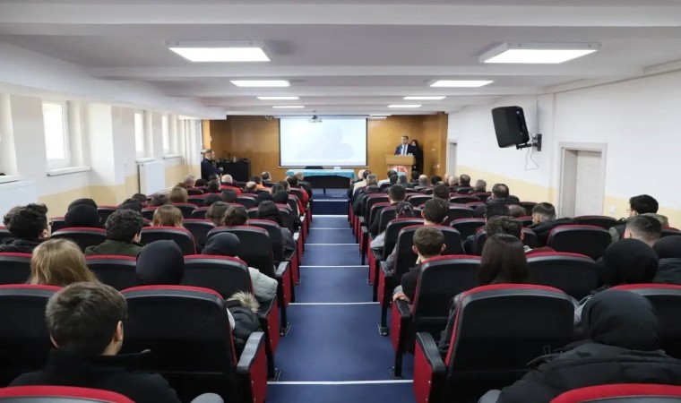 Milli İrade Anadolu Lisesi öğrencileriyle konferansta buluşan Dr. Öğretim Üyesi İbrahim Cengiz, depremle ilgili önemler bilgiler aktardı. Vali Mustafa Eldivan, kurum müdürleri ve öğretmenler de konferansı ilgiyle takip etti.