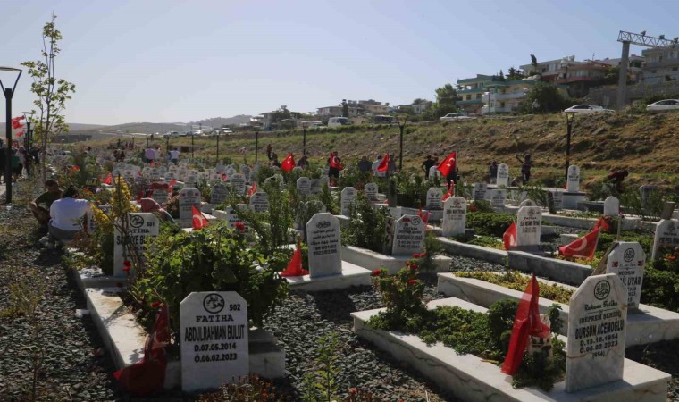 Kahramanmaraş merkezli depremlerde Hatay’da 25 bine yakın insan vefat etmişti. Depremde vefat eden vatandaşlar için Antakya ilçesi Narlıca Mahallesi’nde deprem mezarlığı kurulmuştu. Her bayram olduğu gibi bu bayram da depremde yakınlarını kaybeden vatandaşlar, sabahın erken saatlerinden itibaren ziyaret için deprem mezarlığına geldiler. Mezarları sulayarak göz yaşları içerisinde dua eden depremzede vatandaşlar, yürekleri burktu. Hatay Büyükşehir Belediyesi de mezarlığı bayraklarla donatarak, ziyaret gerçekleştiren vatandaşlara dikmeleri için çiçek dağıttı. Afetzede vatandaşlar, bayram boyunca mezarlıklara ulaşımlarını Hatay Büyükşehir Belediyesi tarafından tahsis edilen ücretsiz servis araçlarıyla sağlayabilecekler.
