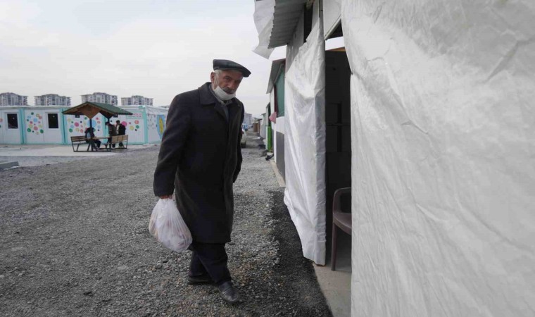 ‘Asrın felaketinin’ ardından evi ve köyünün büyük bir kısmı yıkılan 73 yaşındaki Mehmet Petek, engelli çocuğu ve eşiyle Malatya’ya gelerek konteynere yerleşti. İki dönem muhtarlık yaptığı köyünü terk etmenin üzüntüsünü yaşayan Petek, geri döneceği günü hasretle bekliyor.
