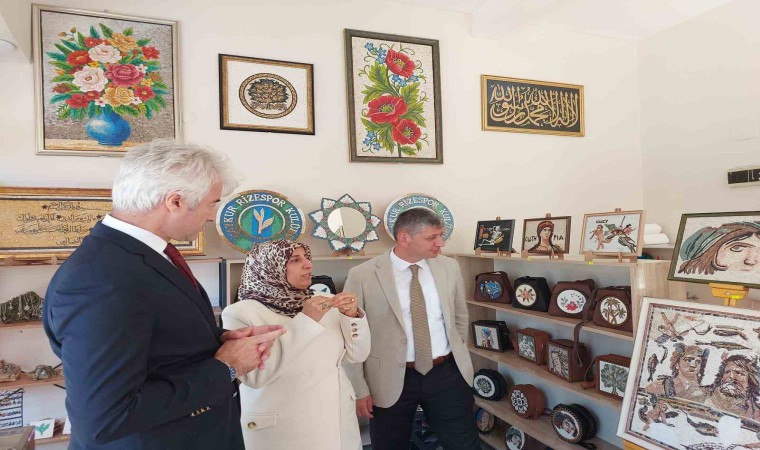 Rize’ye özgü motiflerin mozaik sanatına dökülmüş hallerinin ilgi gördüğünü kaydeden Duran sözlerinin devamında “Burada doğal taşlarla yapılmış olan tablolar çok ilgi görüyor. Çünkü doğal taşın bir enerjisi var. O doğal taş insanı çekiyor. Büyük kuşlu tablo olsun, tavus kuşu olsun. Tabii ki müze replikalarımız da çok ilgi görüyor. Tabii ki Çingene Kızı Antep ve bütünleşmiş. Çingene Kızı da çok rağbet gördü. Kabartmalı, mozaik, Çaykur Rizespor amblemi, tabii ki atmaca figürü çok ilgi gördü. Çay bardağı da çok ilgi gördü. Bu kültürü de burada yaşatacağız inşallah” şeklinde konuştu.