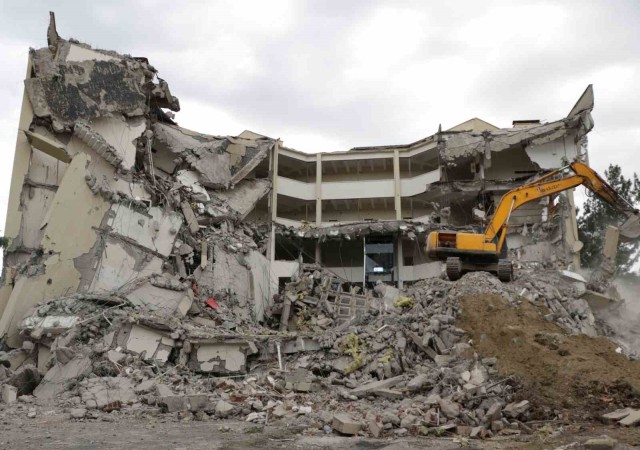 Depremde ağır hasar gören DÜ Rektörlük binasının yıkımına başlandı