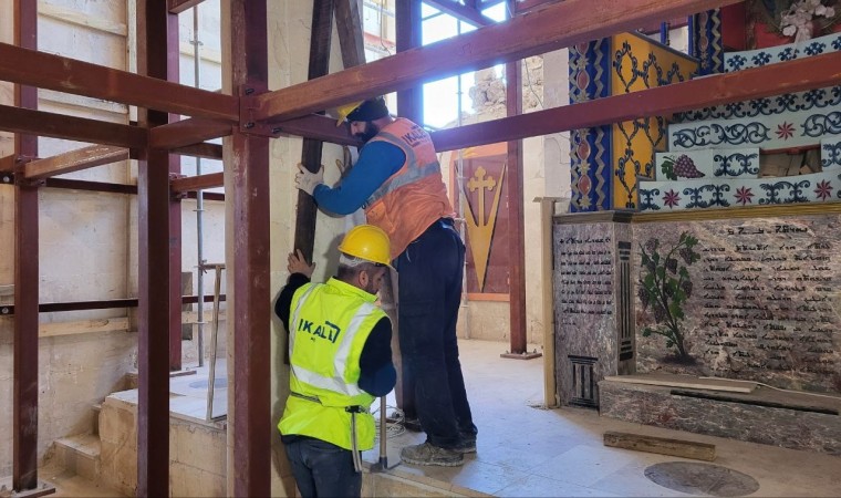 Adıyaman’da 6 Şubat depremlerinde ağır hasar gören tarihi Mor Petrus ve Mor Pavlus Kilisesi’nde kapsamlı restorasyon yapılıyor.