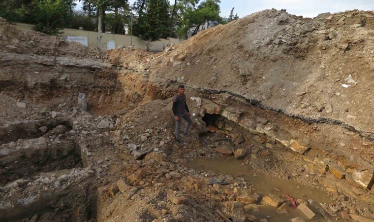 Kahramanmaraş’ın merkez Dulkadiroğlu ilçesinde şehrin en eski yerleşim yerlerinden olan Kayabaşı Mahallesi’nde depremde ağır hasar alan ve yıkılan binaların bulunduğu alanlarda yıkım ekipleri binaların temellerini de söküyor. Şehit İlbey Caddesi’ndeki bir binanın yerinde çalışma gerçekleştiren ekipler, tarihi su tüneli buldu.