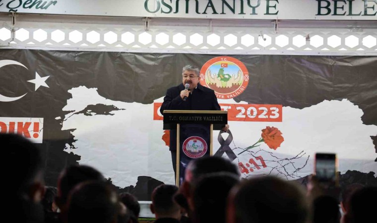 Osmaniye halkının tüm Türk Milleti ile büyük bir mücadele verdiğini dile getiren Vali Yılmaz, “Metanetinizle, duruşunuzda hayran kaldığım sizin içinizde olmaktan duyur duyuyorum. O acılı günlerde tek yürek oldu. Türkiye tek yürek oldu, Osmaniye’miz tek yürek oldu. Hep beraber bu felaketler mücadele ettik. Mücadelede geldiğimiz noktada acıların dinmesi için dinlemeyeceğini biliyoruz ama elimizden gelen gayreti gösteriyoruz. İnşallah bu ayın içinde bin 976 konutumuz teslim edilmiş olacak. 5 bin 300 konut hızlı bir şekilde yapılmakta. Konutlarımızın bir an evvel bitmesi için çok hızlı bir çok hızlı bitmesi için büyük bir mücadele veriyoruz. İnşallah bir an evvel hemşehrilerimizin kalıcı konutlara kavuşmasını çok arzu ediyorum. Burada hemşerilerimize şunu da hatırlatmak istiyorum. Bu yerinden dönüşüm fırsatını da iyi değerlendirmemiz lazım. Burada o konuda da hızlı hareket edersek bir an evvel Osmaniye’mizin toparlanması anlamında da çok faydalı olacağına inanıyorum. Dünyanın en güçlü devletleri dahi bu çapta bir deprem yaşasa bu milletin gösterdiği fedakarlığı birlikteliği, bu devletin gösterdiği gücü inanın gösteremez. Yüce Mevlamdan dileğimiz bir daha ülkemize dünyada böyle felaketlerin yaşanmamasıdır” dedi.