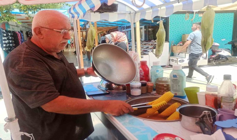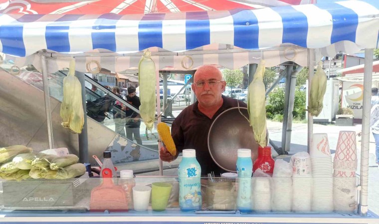 Kahramanmaraş’ta depremde dükkanı yıkılan esnaf, mısır satarak geçimini sağlıyor.