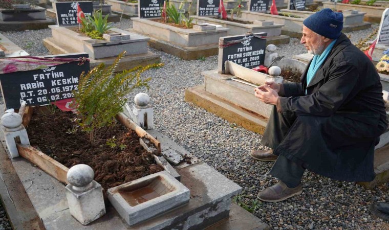 Asrın felaketinde 5 gün enkaz altında kalan 57 yaşındaki Abdullah Keskin, eşi ile kızını enkaz altında, engelli oğlunu ise depremden 10 ay sonra kaybetti. Afetin birinci yıl dönümünde güne mezarlıkta başlayan depremzede Keskin, gözyaşı dökerek, "Acımız hala ilk günkü gibi taptaze" dedi.