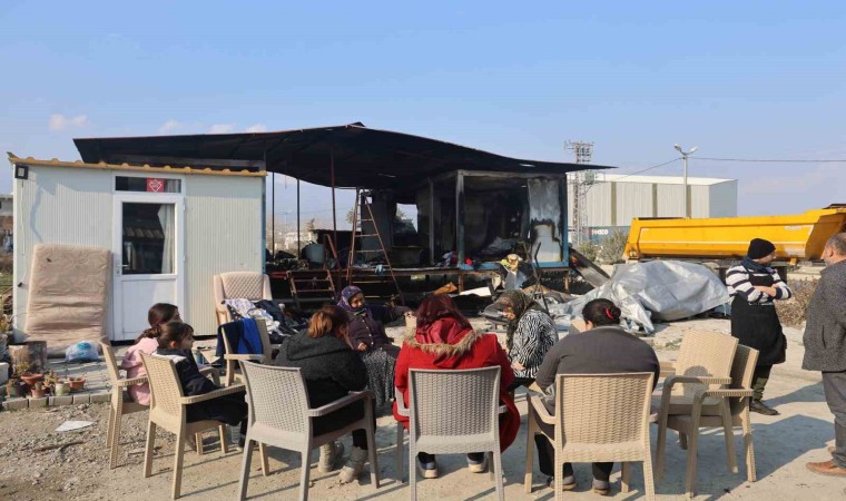 Hatay’da depremzede ailenin yaşadığı konteyner alevlere teslim olarak kullanılmaz hale geldi. Depremde evi yıkılan aile, konteyner yuvalarının yanmasıyla ikinci kez yuvasız kaldı.