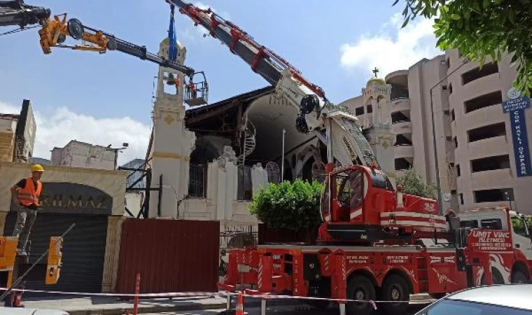 Depremde hasar alan Rum Ortodoks Kilisesi’nin risk oluşturan çan kuleleri kaldırıldı