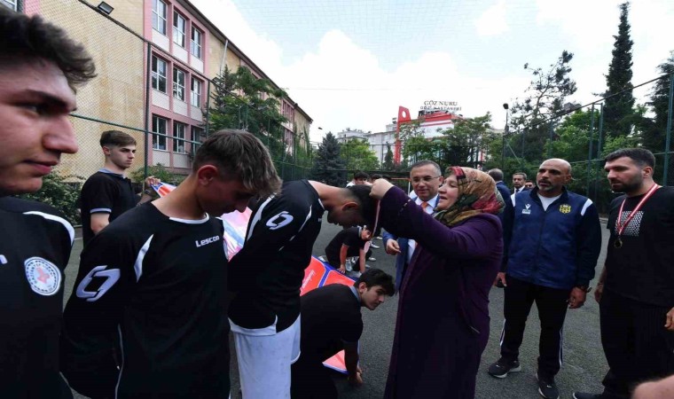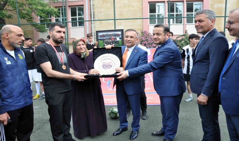 Ahmet Eyüp Türkaslan Sınıflararası Futbol Turnuvası’nda birinci olan takımın ödülünü Gaziantep Valisi Kemal Çeber verirken, ikinci olan takımın madalya ve ödüllerini ise Milli Eğitim Müdürü Yasin Tepe takdim etti.